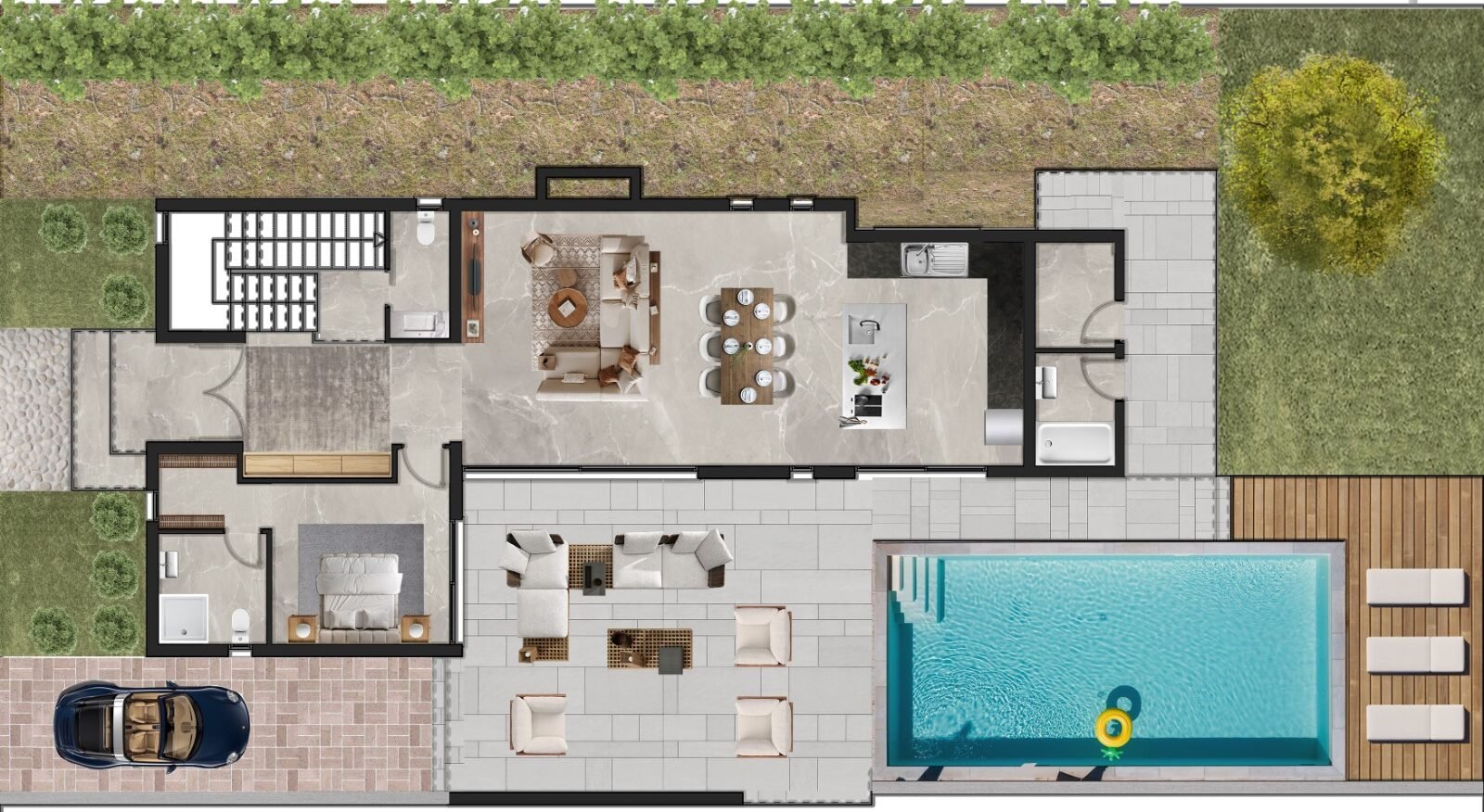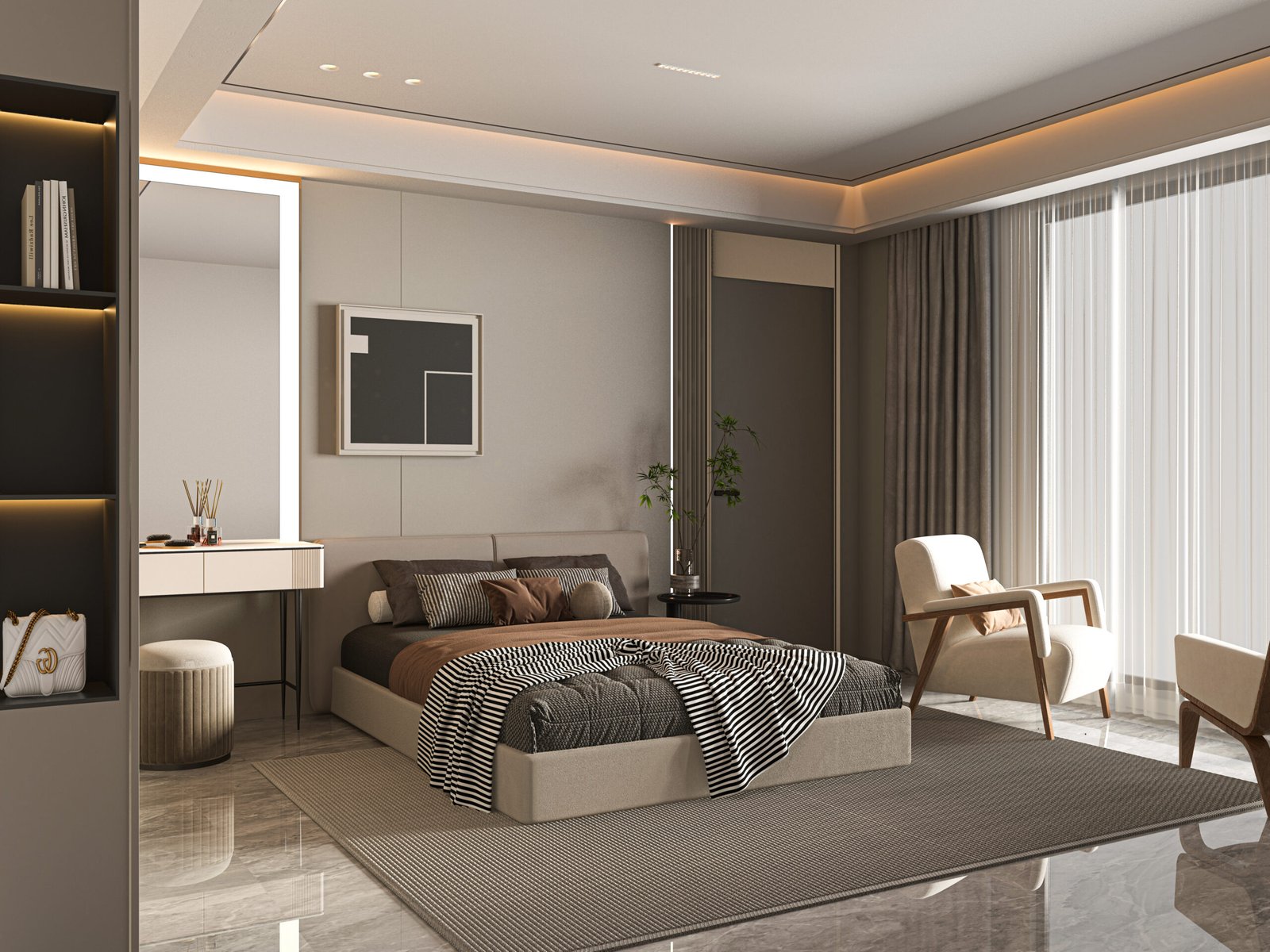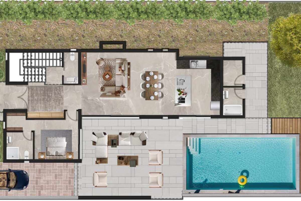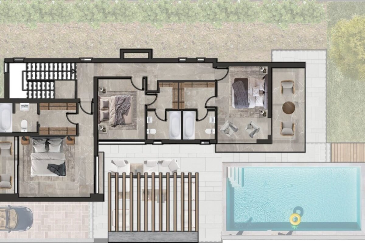 • 3 yatak odası – her biri özel banyo, WC ve giyinme odalı