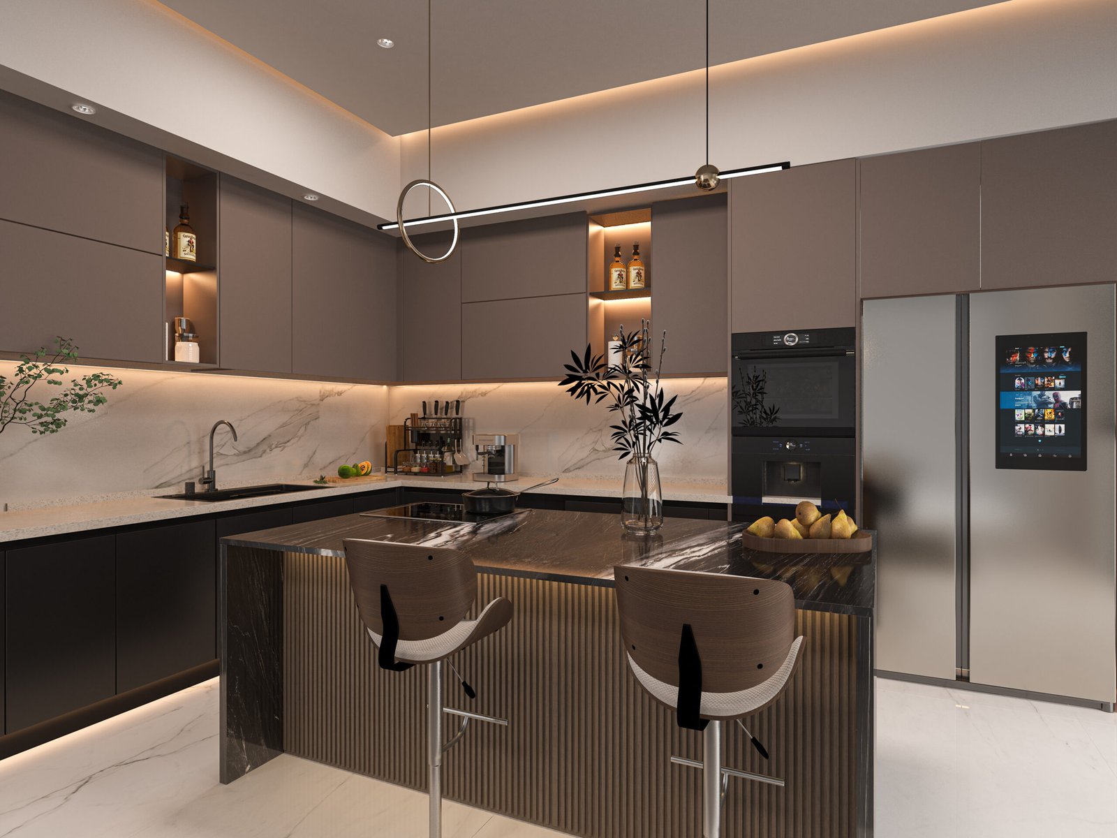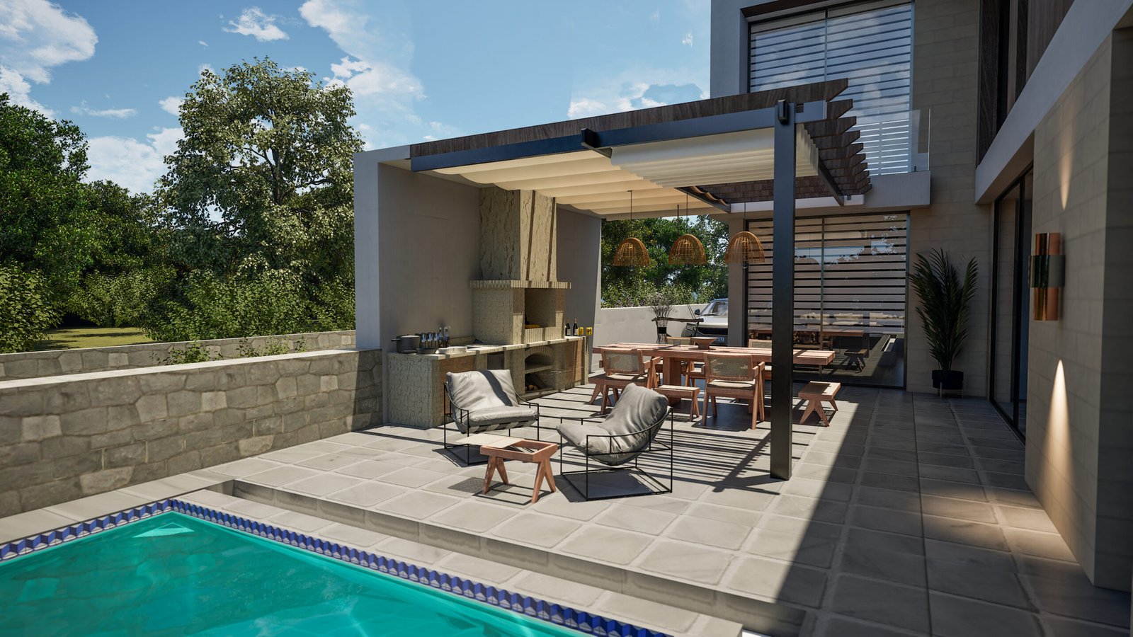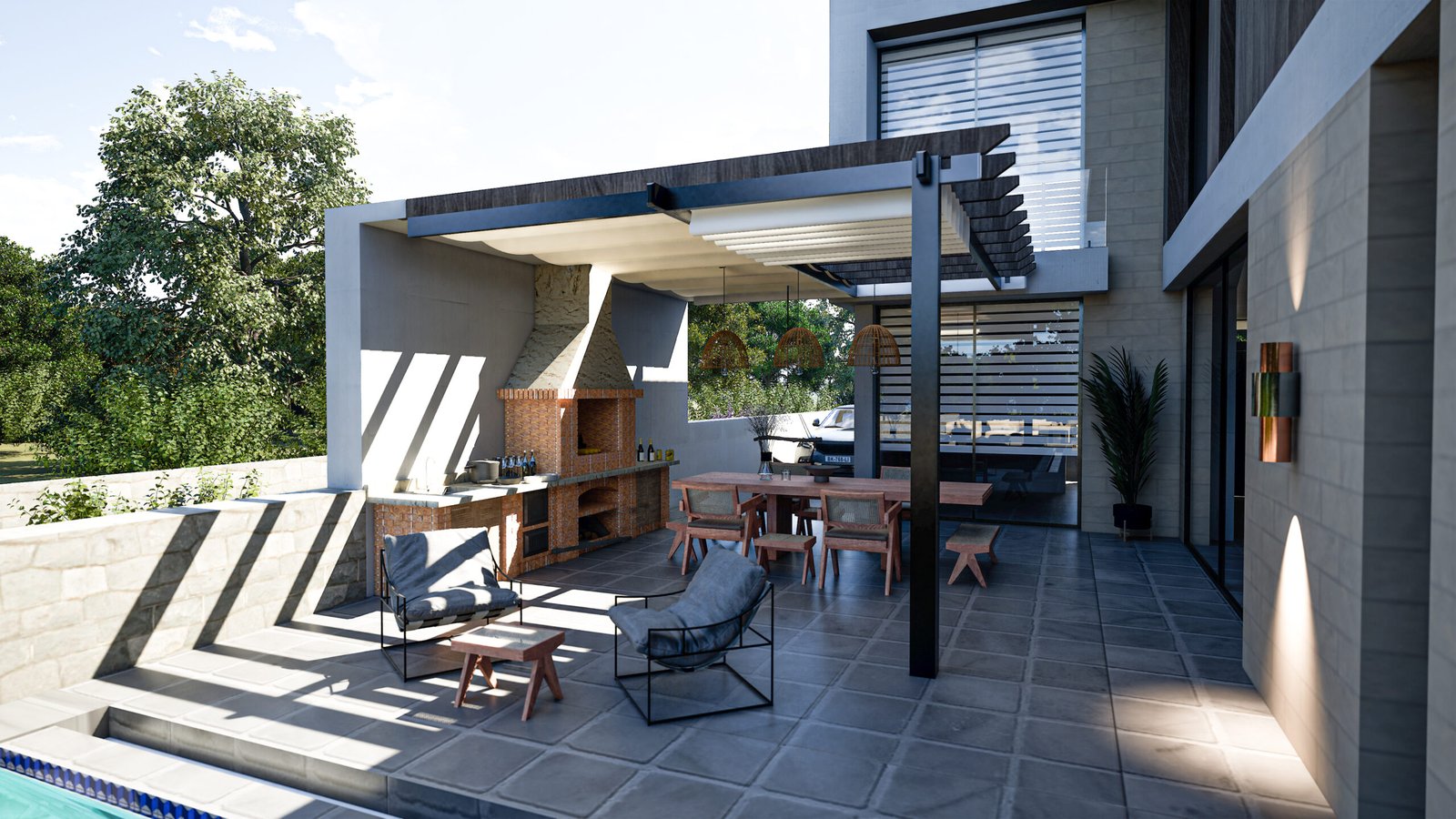 Çatı terasında mutfak ve barbekü alanı