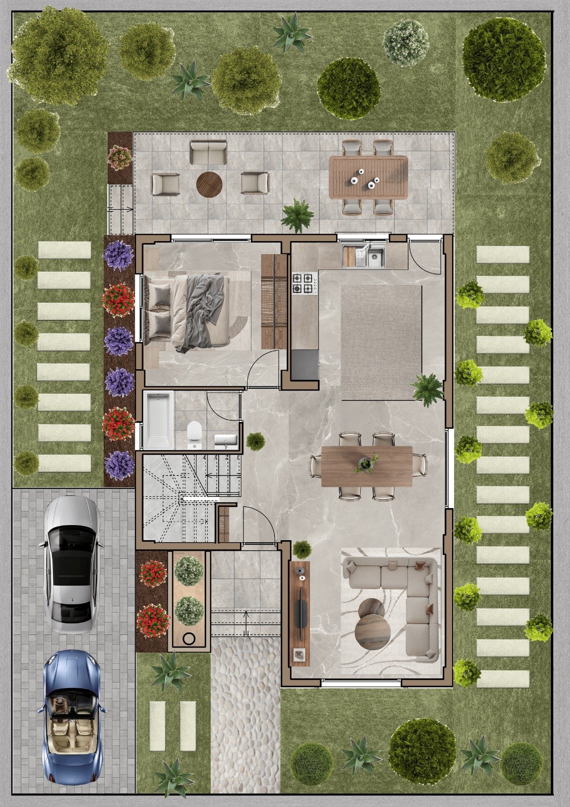 -Ön teras ve bahçe
