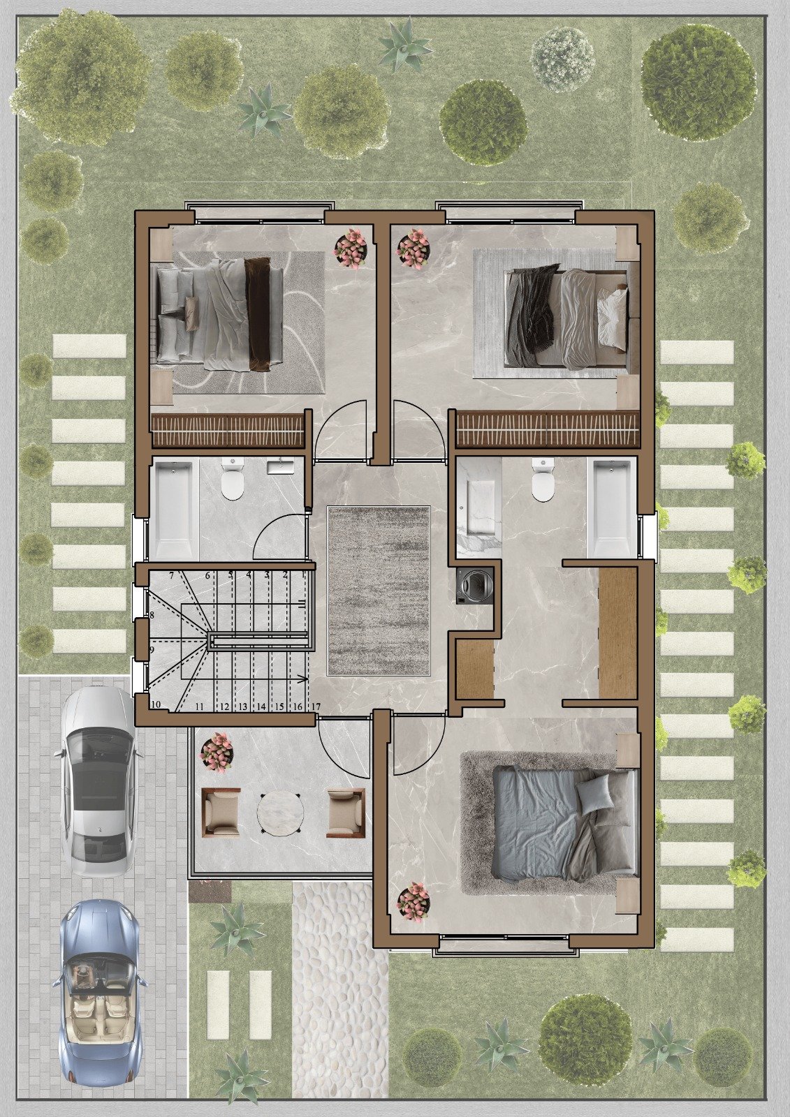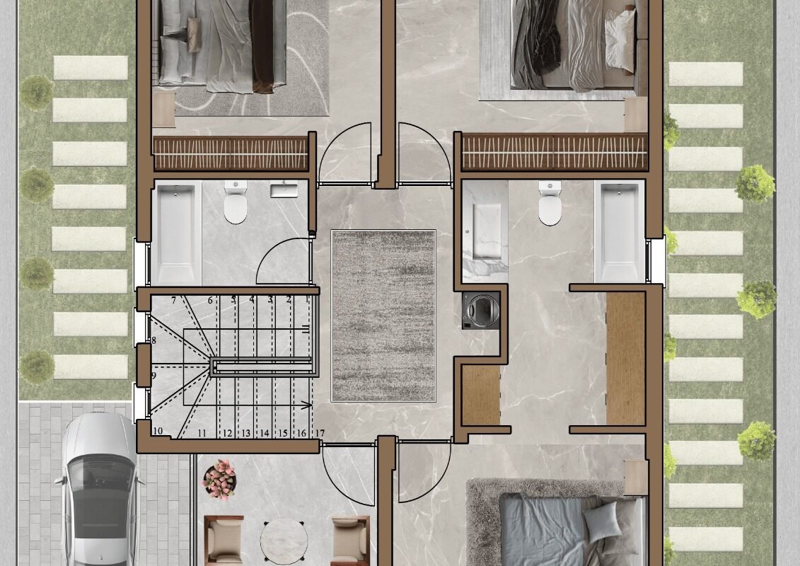 -3 yatak odası(Ebeveyn odası en-suite)